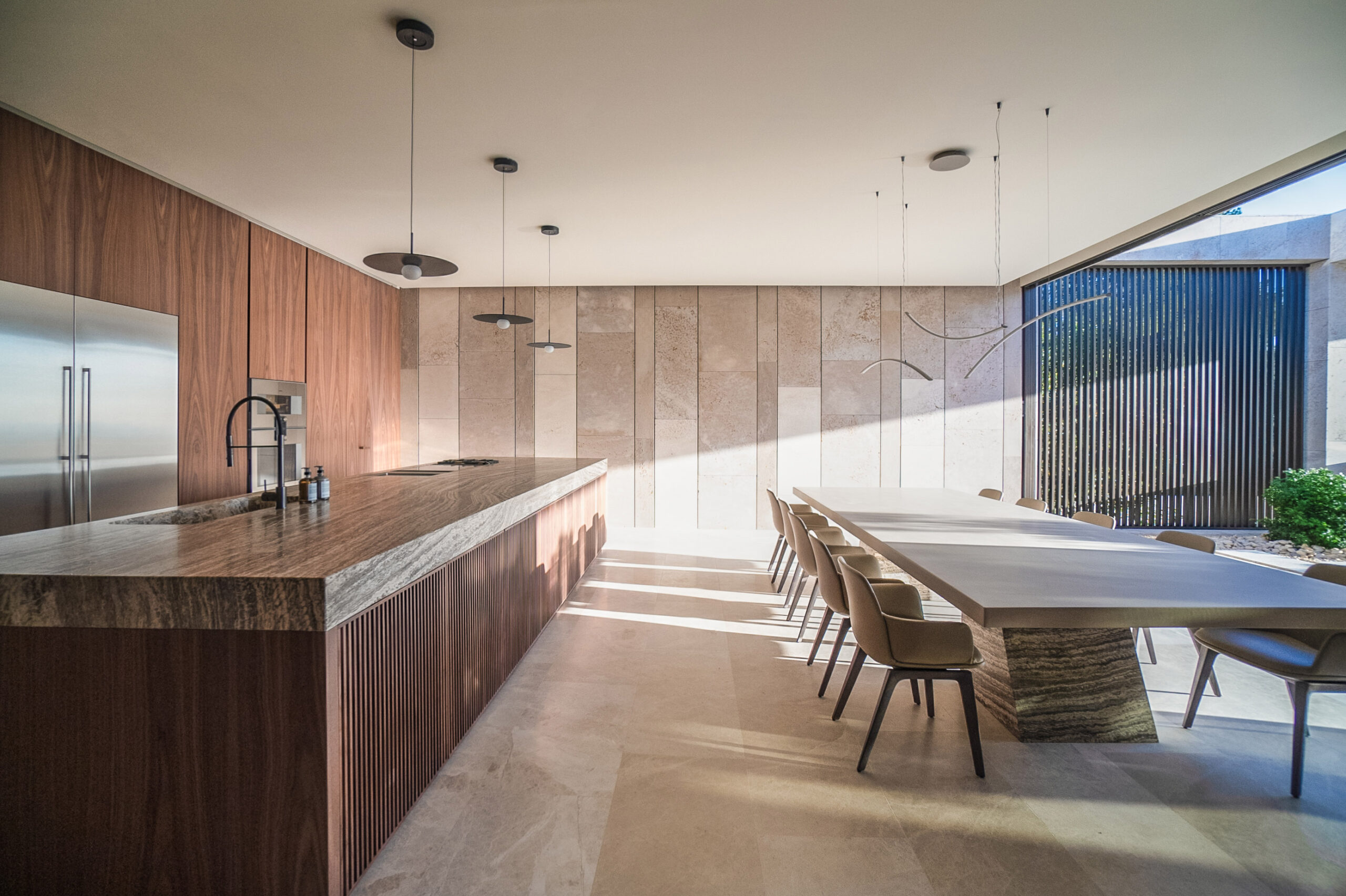 Throughout the residence, Molteni&C furnishings play an essential role in shaping the atmosphere of refined comfort and understated luxury. Carefully curated to complement the villa’s architectural vision, each piece enhances the fluidity between spaces, reinforcing the project’s philosophy of balance, sustainability, and elegance.