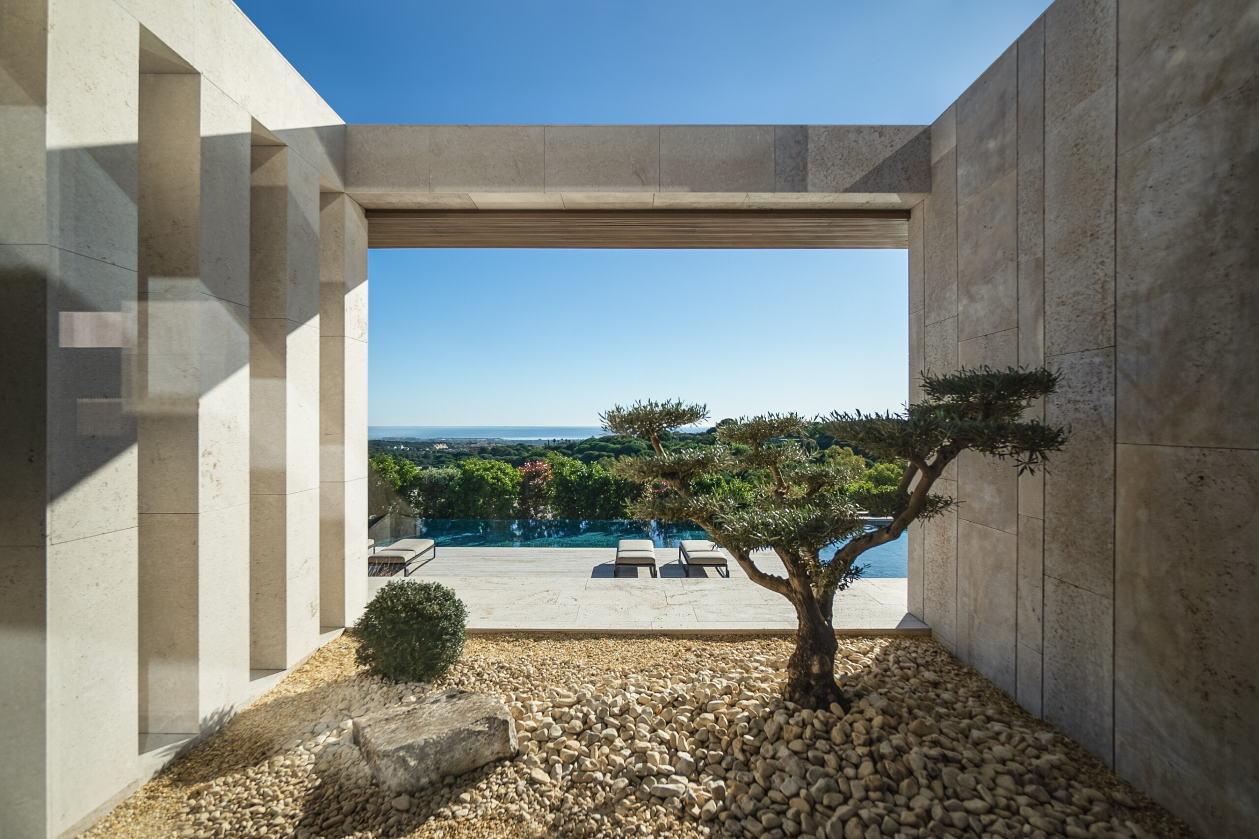 Nestled within the picturesque landscape of La Reserva in Sotogrande, Spain, TAI Villa is a striking example of contemporary architecture that seamlessly integrates with its natural surroundings. Designed by Manuel Ruiz Moriche of ARK Architects, the villa embodies the timeless principles of Mediterranean living — openness, harmony with nature, and the use of noble materials. Perched on a hillside podium of stone and wood, its elevated volume offers breathtaking views of the Mediterranean Sea, creating an uninterrupted dialogue between interior and exterior spaces.