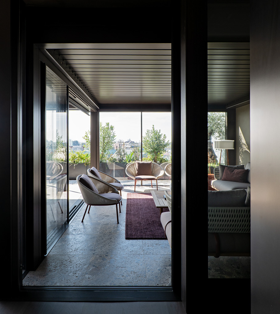Both indoors and outdoors, the penthouse has been mindfully designed to feature pieces from across the Molteni&C Collections.